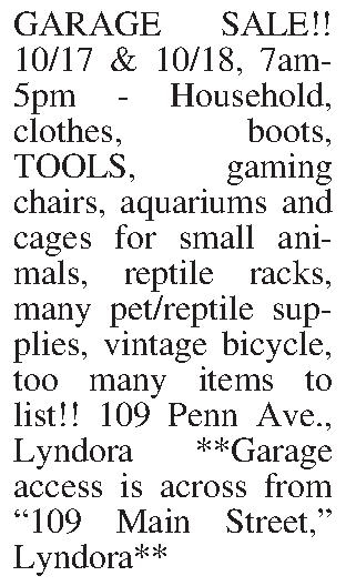 Category: Yard/Garage Sales Yard - Garage Sales