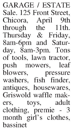 Category: Yard/Garage Sales Yard - Garage Sales