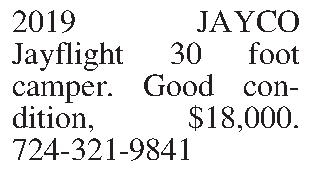 2019 JAYCO Jayflight 30 foot camper. Good condition, $18,000. 724-321-9841