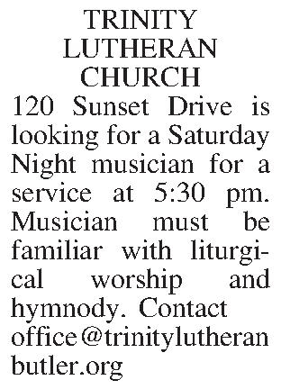 120 Sunset Drive is looking for a Saturday Night musician for a service at 5:30 pm. Musician must be familiar with liturgical worship and hymnody. Contact